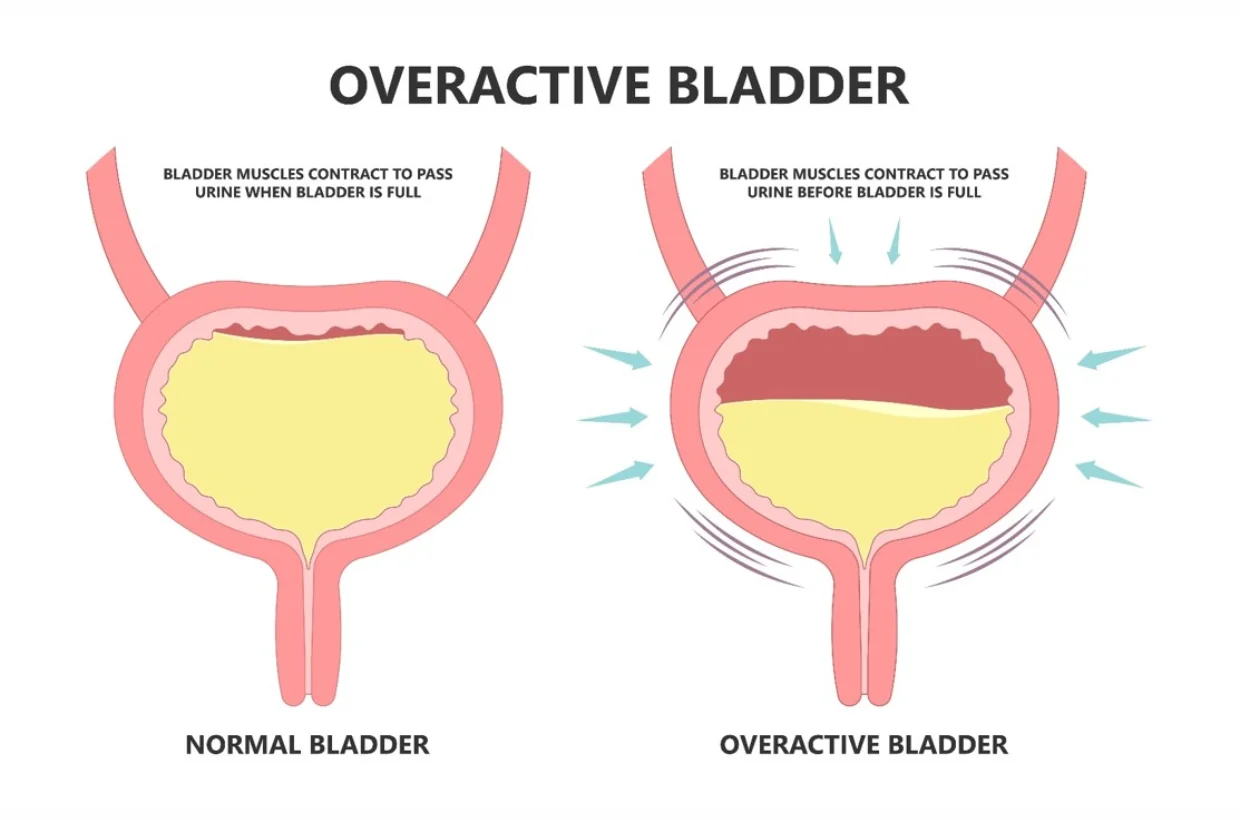 Overactive bladder causes frequent and sudden urges to urinate, sometimes with leakage. It can occur due to nerve overactivity, infections, or aging. Diagnosis involves urine tests, ultrasound, and bladder function studies. Treatment includes bladder training, medication, and advanced therapies like nerve stimulation. Lifestyle changes such as limiting caffeine and managing fluid intake also help. Consistent management improves bladder control and allows individuals to live more comfortably and confidently.